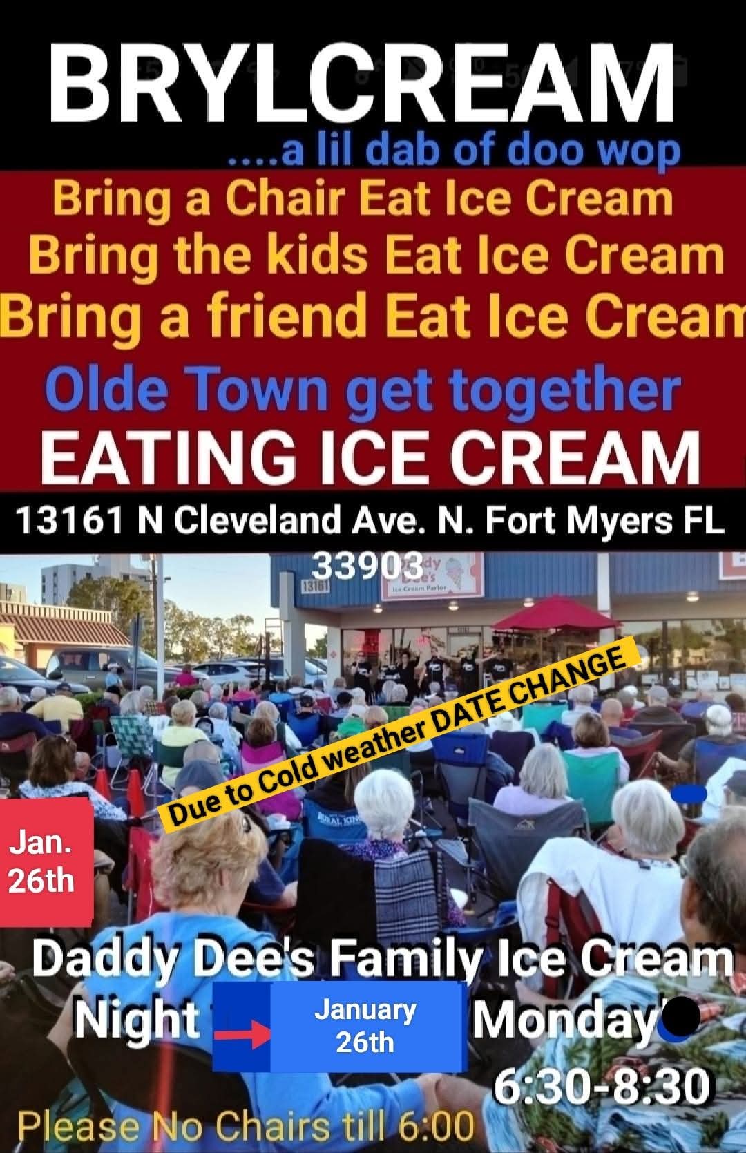 An outdoor concert with Brylcream at Daddy D’s ice cream shop. Now that’s always fun!!